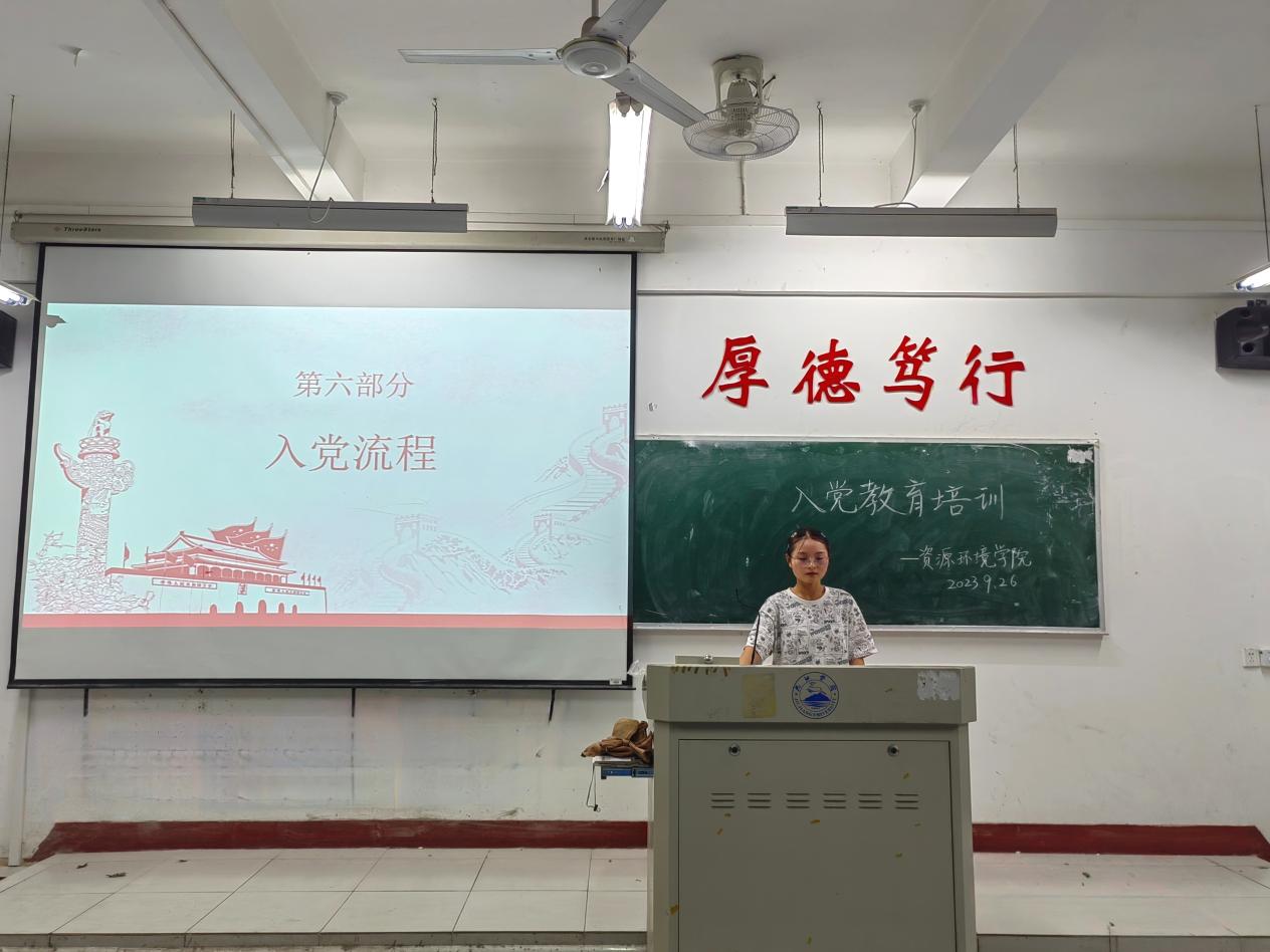 为充分发挥党组织教育青年功能,进一步加大对青年的培养教育力度,培养高素质人才,更好的端正入党动机,清楚的认识了党的性质和宗旨,以及党的指导思想,九游体育官方网站学生党支部于9月26日晚在香远楼给2023级大一新生开展“入党流程教育培训”主题党日宣讲活动。