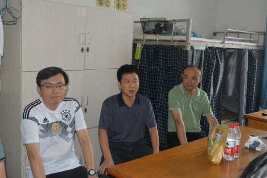 7月18日下午,九游体育官方网站院长汤明、党委书记杨期勇、副书记张杨帆及学生口辅导员一行来到学生寝室,亲切看望慰问暑期考研和科研实践留校学生,深入了解学生的生活、学习和思想状况。