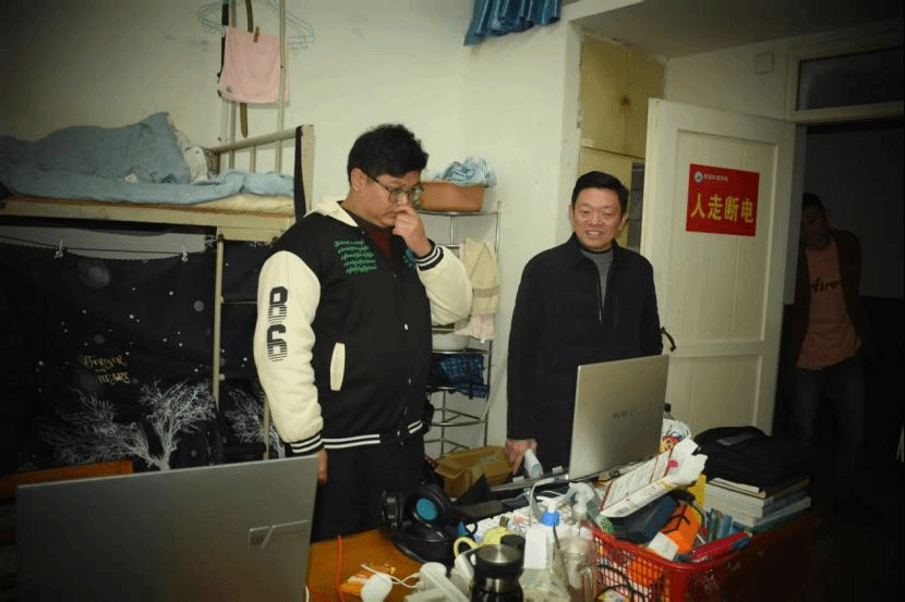 2月17日,九游体育官方网站党委书记徐常龙、副书记翟佩佩带队开展卫生与安全检查工作,旨在了解学生的生活状况,为学生营造良好的学习和生活环境,推动宿舍文化建设,助力学生成长成才。