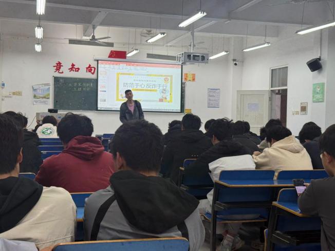 为切实提升大学生反电信网络诈骗防骗意识,营造良好的学习生活环境,3月23日晚6:30,九游体育官方网站开展反电信网络诈骗宣传教育主题班会,学院全体学生、班主任参加,党委副书记翟佩佩带领学生科、思政科深入班级检查并加以强调。