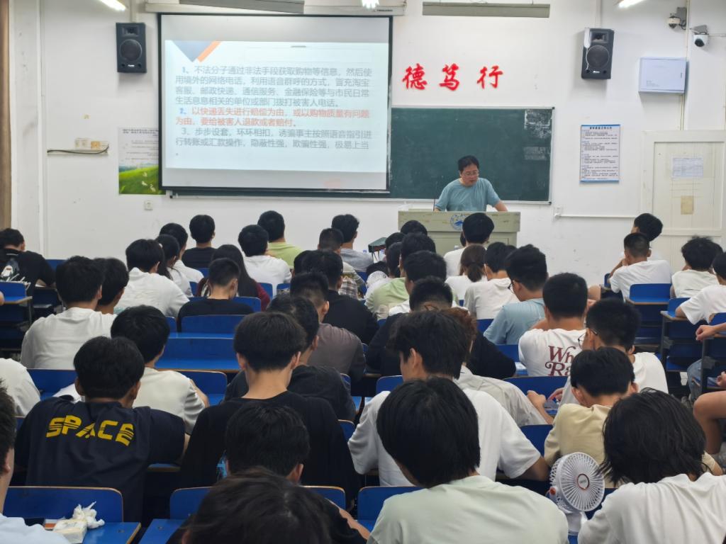 为切实提升学生识别和防范电信网络诈骗的能力,九游体育官方网站于近日组织大一各班级开展反诈骗专题课堂,由思政科科长肖国光、学生科科长过七根、学生科辅导员王勇和郑锋担任主讲,为学生带来一堂生动且实用的防骗知识课。