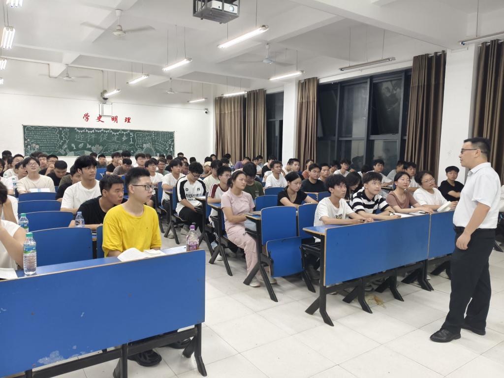 在“高等学校学生行为准则”部分,王勇老师结合生动案例,阐释“志存高远,坚定信念”“热爱祖国,服务人民”等准则内涵,引导学生将个人成长与家国责任相融合;过七根老师讲解“教学教务制度”时,对学籍管理、课程考核、成绩评定等内容细致说明,提醒学生重视学业规范,熟知选课、考试、补考、重修等流程,避免因不了解制度而影响学业;郑锋老师在“管理规范”板块聚焦日常学习生活管理,从早读、自习到校园活动组织,明确纪律要求,强调良好秩序对学习成长的保障作用;“纪律管理规范”则通过剖析违纪案例,解读处分种类与适用情形,警示学生严守纪律红线,维护校园安全稳定。