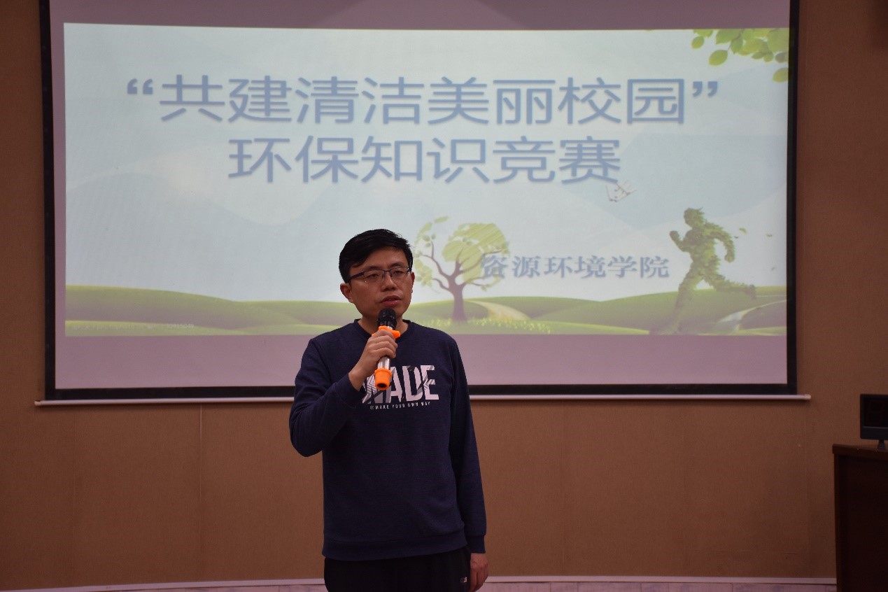 在第51个“世界环境日”来临之即,5月15日晚,由九游体育官方网站举办的第一届“世界环境日,共建清洁美丽校园”环保知识竞赛在向学楼201举行,来自资环学院的6个代表队参加竞赛。学院党委副书记张杨帆在活动启动仪式上致辞。