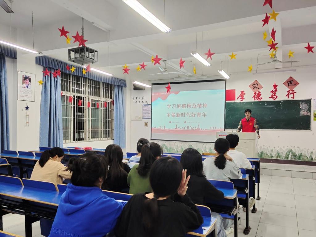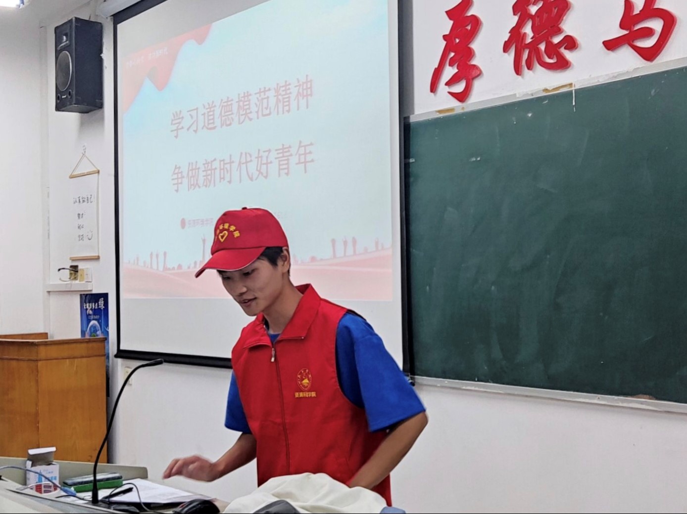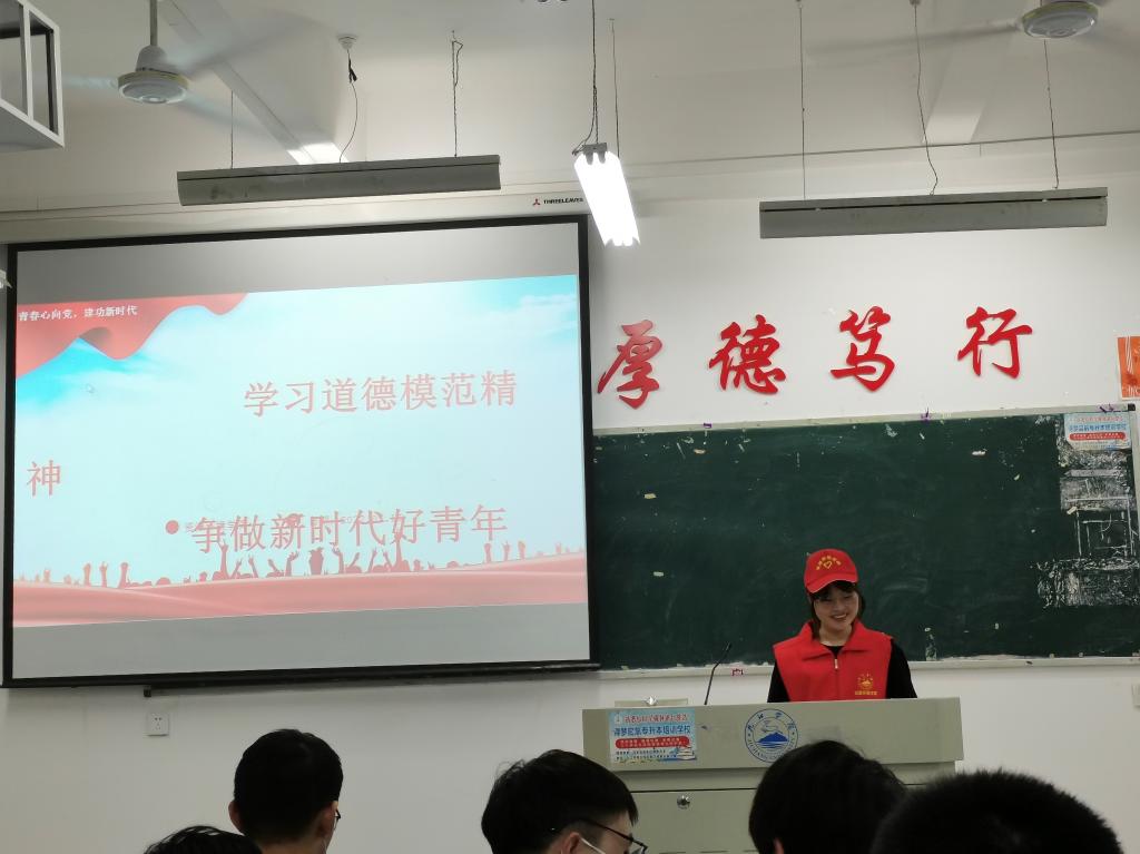 青春心向党,建功新时代,喜迎二十大,奋进新征程。为弘扬社会主义核心价值观,积极倡导崇尚道德模范、学习道德模范、关爱道德模范、争当道德模范的社会风尚,在全院营造崇德向善、见贤思齐、德行天下的浓厚氛围。 5月15日晚7点,九游体育官方网站组织入党积极分子和青年志愿者到大一大二各班级进行“青春心向党,建功新时代”道德模范宣讲志愿活动。
