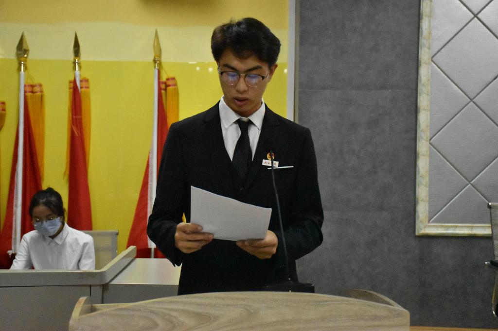 随即大会进入报告阶段。团委书记肖国光老师为大会致开幕词,学生会执行主席张明对2021-2022学年学生会的自身建设、体育、文艺、院风学风等各方面工作进行了工作报告。接下来学生团委副书记彭颖就2021-2022学年团委思想政治方面、工作服务方面等所取得的成就和存在的不足做了工作报告。