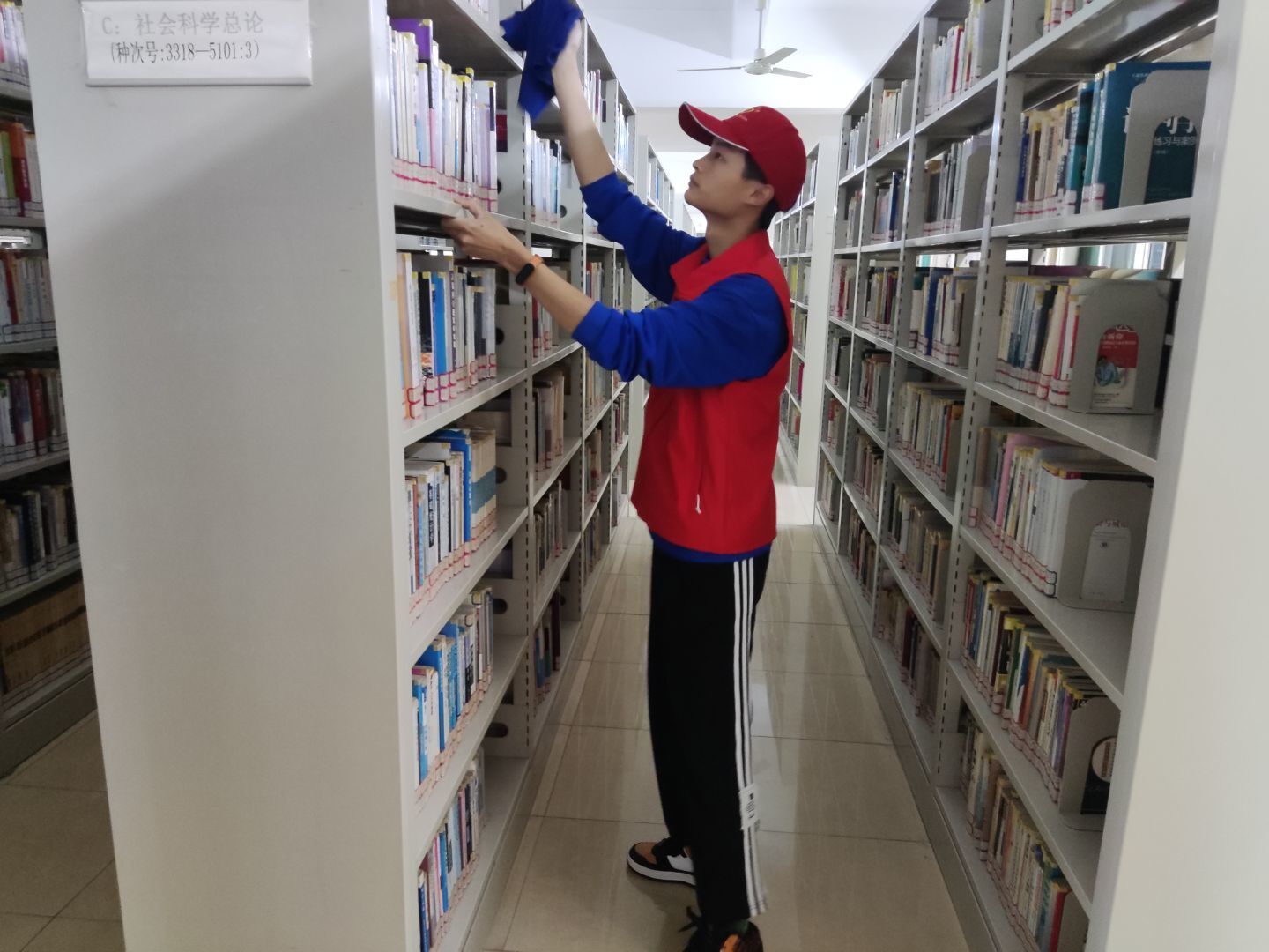 书香浓情,你我同行。在约定的时间,志愿者们准时来到图书馆,经过图书馆老师简短讲解培训后,大家领取任务,各司其职。活动现场,志愿者们认真打扫着书架的卫生,将书本摆放整齐。具有极高的责任意识。