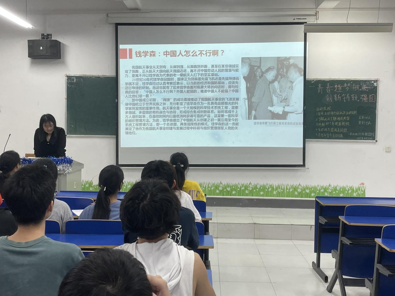 随后,大家认真学习了习近平总书记近年来对我国航天事业发展的系列重要指示和讲话精神,深切缅怀了钱学森、郭永怀、程开甲等矢志航天报国的“两弹一星”功勋奖章获得者,致敬了“中国飞天第一人”杨利伟、“中国太空漫步第一人”翟志刚和“中国首位‘太空教师’”王亚平等中国航天员群体,探寻了高健、鲍硕、周承钰等新一代青年航天科技工作者背后奋进拼搏的故事。