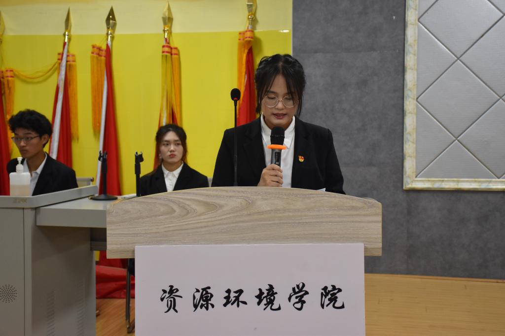 会上,资环学院第三届学生会执行主席李鑫伟宣读第二届学生会任命结果。