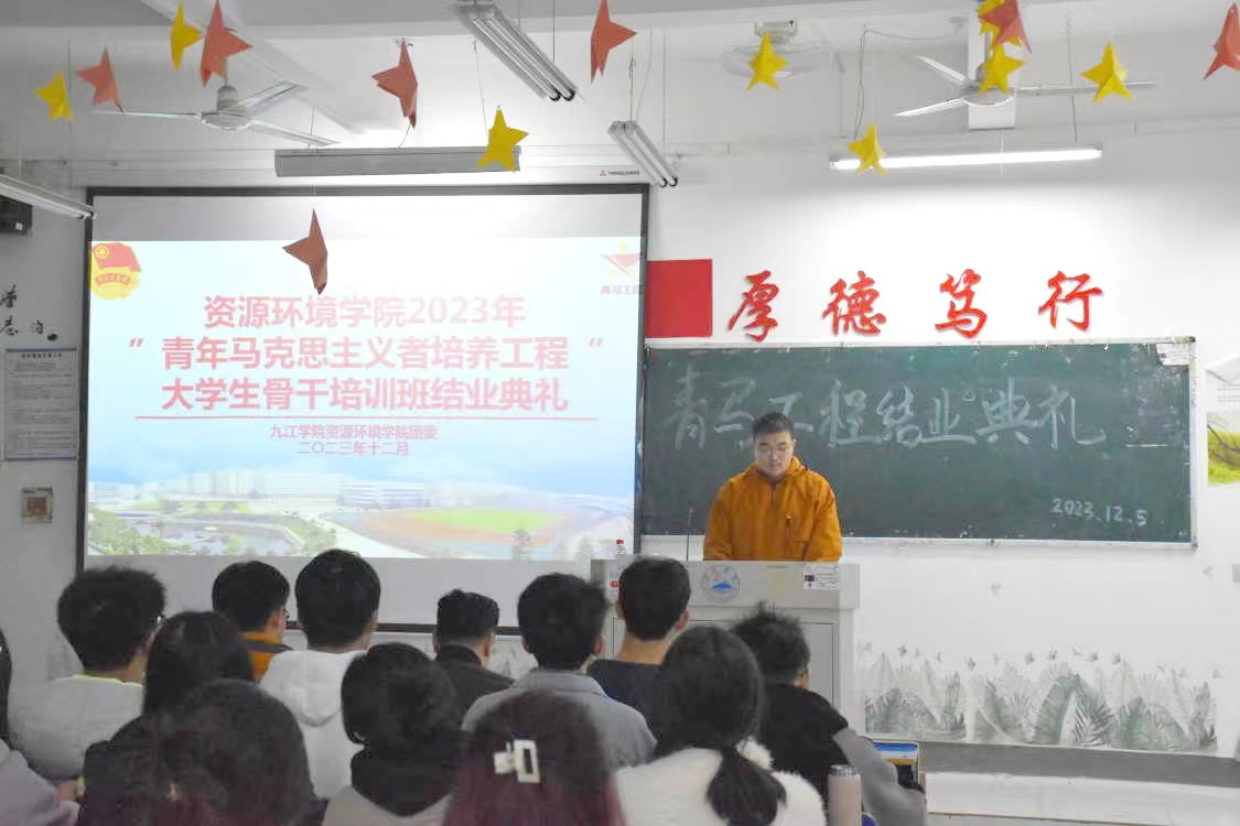 青年是国家的未来、民族的希望。为深入学习贯彻习近平新时代中国特色社会主义思想和党的二十大精神,贯彻落实习近平总书记关于青年工作的重要论述,进一步团结引领在校青年,切实加强我校大学生骨干队伍建设,2023年12月5日晚,在香远楼405室九游体育官方网站青马工程结业仪式顺利举行。出席结业仪式的有九游体育官方网站团委书记,学生思政教育科科长肖国光老师、学院学生兼职团委副书记曹嘉玮、学院学生会组织部副部长古立涛,青马工程全体学员参加,结业仪式由学院学生会组织部部长朱益锋主持。