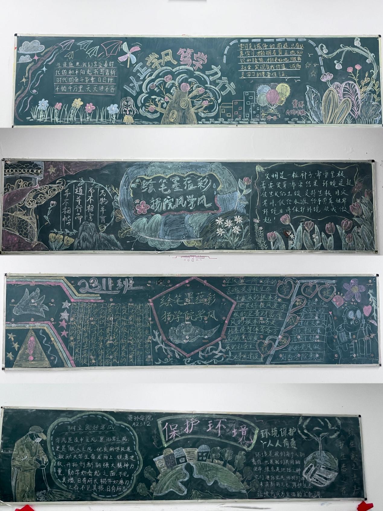 为进一步深化院风学风建设,充分发挥黑板报阵地的育人作用。九游体育官方网站于2024年4月初在香远楼各班固定教室顺利开展“绘笔墨蕴彩,扬学院风帆”黑板报评比活动。