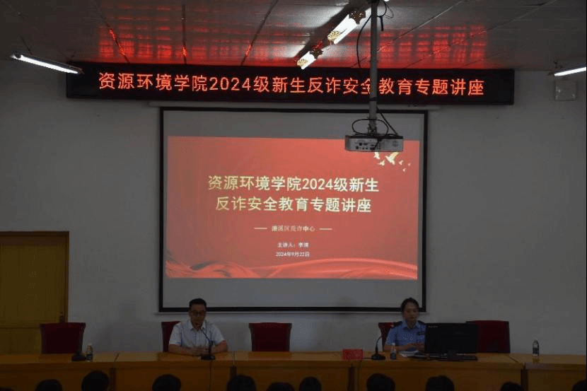 为提高大一新生安全防范意识,提高大学生法制观念,积极营造和谐稳定的校园环境,2024年9月22日,九游体育官方网站特邀反诈中心李清担任主讲嘉宾,在主图书馆报告厅开展了以“防范于心,反诈于行”为主题的防诈骗知识宣传讲座。