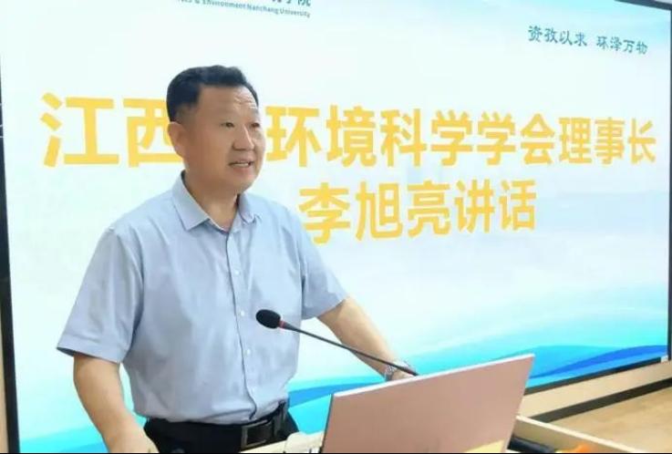 紧接着,江西省环境科学学会理事长李旭亮发表讲话。他在讲话中指出,江西作为全国首批生态文明试验区,拥有得天独厚的自然环境与绿色发展基因。新时代的大学生凭借专业优势,更应承担起特殊使命。每一次的科普宣讲与环保实践,都是在为江西的“绿水青山”增添活力,为全国的 “双碳”目标奠定基础。基于此,他对大学生志愿者们提出了三点希望: