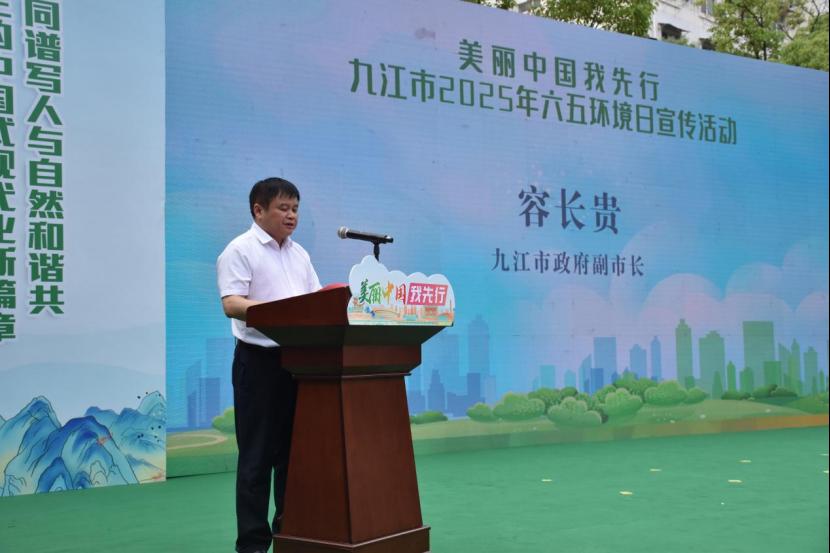 容长贵指出,过去一年,全市上下牢记习近平总书记“绿水青山就是金山银山”的殷切嘱托,坚定不移走生态优先、绿色发展之路。九江的天更蓝了、水更清了、山更绿了,生态文明理念日益深入人心,山川披绿、林海生金,从绿水青山间捧出了“金饭碗”。这些成绩的取得,离不开每一位市民的共同努力,更要归功于广大青年朋友们的热情参与。他通过青年朋友们向全社会发出三点倡议:一是争做生态文明理念的“代言人”,发挥创意优势,用新媒体传播绿色声音;二是争做绿色转型的“实干家”,从小事做起,积极践行环保理念,为美丽九江贡献智慧和力量;三是勇当美丽九江的“守望者”,用脚步丈量152公里长江岸线,将生态课堂开到田间地头,守护九江生态底色。