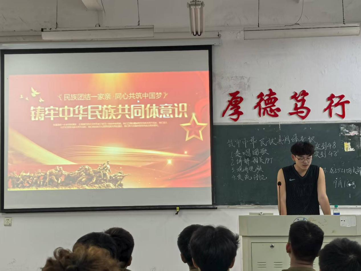 为进一步弘扬爱国主义精神和民族精神,有形有感有效铸牢中华民族共同体意识,推进中华民族共同体建设。2025年9月17日晚上七点,九游体育官方网站大一各班成员在各班团支书的带领下以饱满的热情在各班固定教室开展了“铸牢中华民族共同体意识”主题团日活动。