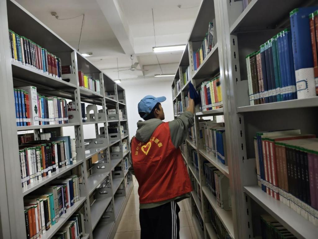 志愿者们在九游体育官方网站主校区图书馆迅速分工、默契合作。他们手持工具细致清扫地面与书架角落,按分类规范将错位书籍逐本归位。大家以饱满热情投入服务,用行动践行志愿精神,营造出干净有序的阅读环境,为校园传递了温暖的奉献正能量。