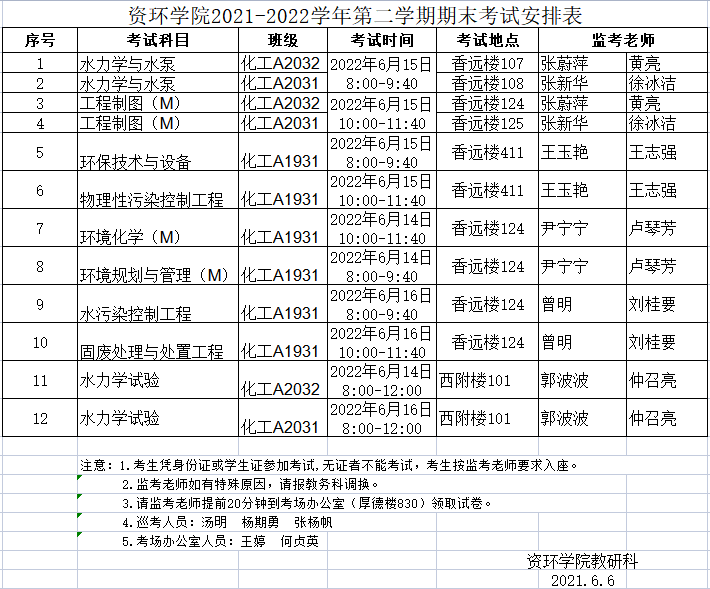 九游体育官方网站2021-2022学年第二学期期末考试安排