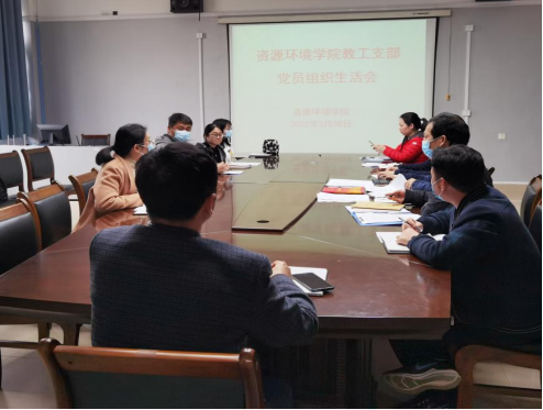 3月30日下午,资源环境学院教工党支部在主校区厚德楼709会议室召开了2021年度专题组织生活会,支部全体党员同志参加会议,学院党委班子以普通党员的身份参加了会议,会议由支部书记王志强同志主持。