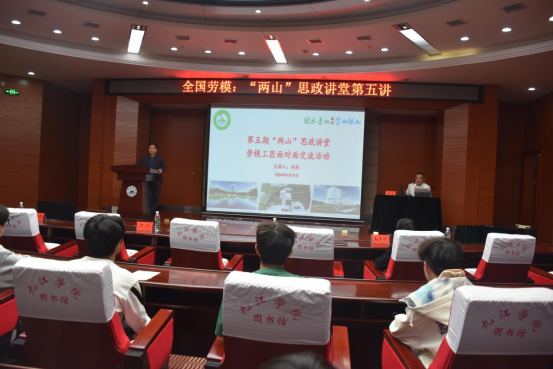 第五期“两山”思政讲堂以“聆听劳模匠心追梦 工匠精神薪火相传”为主题,不仅将工匠精神、劳模精神深深植入校园之中,更为青年大学生成人成才注入了新的活力与强大动力,有效推动了学院“弘‘两山’理念,育环保英才”党建品牌工作与学生思政工作的深度融合,积极推动青年大学生的成长与成才。