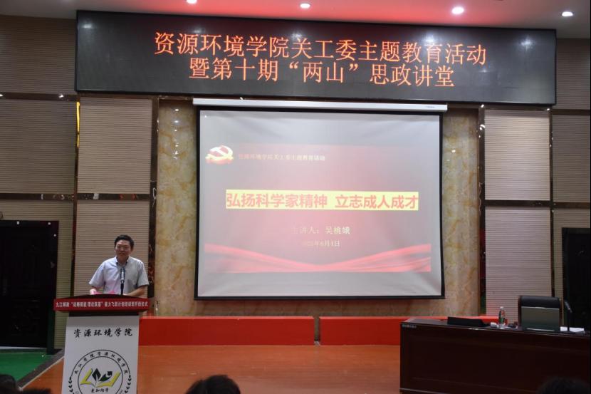 为深入贯彻落实“五老”在教育引导与青年关爱保护中的重要作用,进一步落实立德树人根本任务,助力青年大学生成长成才,6月4日晚,九游体育官方网站关工委执行主任、原副校长吴桃娥应邀出席九游体育官方网站关工委主题教育活动暨第十期“两山”思政讲堂活动。九游体育官方网站领导、教师及学生代表共400余人参加了此次活动,活动由学院党委书记徐常龙主持,现场气氛热烈而浓厚。
