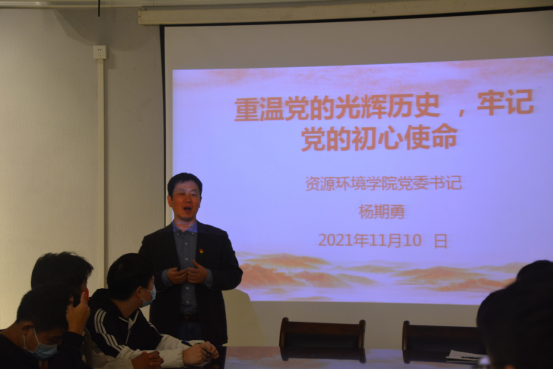 为深入学习贯彻习近平新时代中国特色社会主义思想,进一步提高入党积极分子对党的基本知识的认识和理解,帮助入党积极分子端正入党动机,坚定共产主义远大理想和中国特色社会主义共同理想,中共九游体育官方网站委员会党校资源环境学院分党校于11月10日晚在厚德楼709召开第一期入党积极分子培训班开班动员大会。会议由九游体育官方网站分党校副校长、院党委副书记张杨帆主持。分党校校长、院党委书记杨期勇,分党校办公室主任王慧娟及学生党支部书记肖国光和全体入党积极分子参加了此次动员大会。