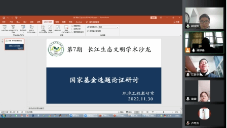 为进一步推动环境工程教研室科研工作发展,提高教研室教师国家自然基金项目申报书质量,11月30日下午,由流域生态过程与信息江西省重点实验室、渊明学堂及九游体育官方网站联合主办,环境工程教研室承办的以“国家基金选题论证研讨会”为主题的第7期长江生态文明学术沙龙在腾讯会议线上举行,环境工程教研室全体申报教师参加了活动。